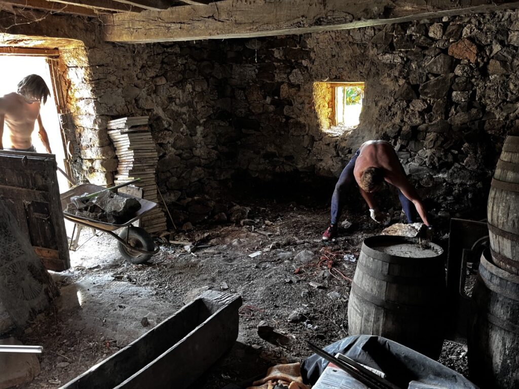 De schuren onder en naast ons huis zijn inmiddels ook leeg. Stenen voerbakken, oude puinzooi en riolering zijn verwijderd door inspanningen van vrienden die ons een paar dagen mentaal en fysiek kwamen ondersteunen. Supertijd gehad.
