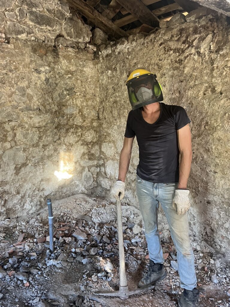 Er wordt hier nog steeds volop geschiedenis gesloopt. Bijvoorbeeld betonnen vloeren die zo ongelooflijk amateuristisch zijn gestort en opgelapt dat ze er allemaal uit moeten. Een krachtige breekhamer werd aangeschaft, die niet krachtig genoeg bleek. Toch maar met een pikhouweel en moker aan de slag. Kan me nu moeiteloos verplaatsen in een kompel die gelaten afdaalt in het ondergrondse om opnieuw een uitzichtloze dag te moeten ondergaan. Anderzijds: dat je hier kunt blijven weghakken, heeft natuurlijk ook iets opbouwends. Zou ik mijn huidige tempo aanhouden in een gemiddeld rijtjeshuis in Nederland dan zou na luttele dagen enkel de kruipruimte een stille getuige zijn van een inmiddels volledig gesloopte woning. Op onze locatie kun je jarenlang heerlijk hakken. Wat een voorrecht.